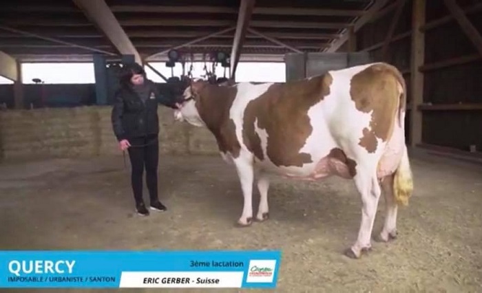 QUERCY is sired by IMPOSABLE on an URBANISTE dam. She is in her 3rd lactation, calved since 70 days, and already milk recorded at 41 kg/day. She is always back in calf quickly which explain why she got short lactations : in her 2nd lactation, she produced in 266 days 7665 kg @4,51 % Fat and @3,63 % Protein.